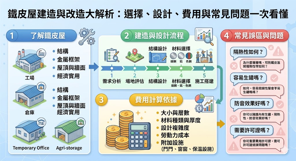鐵皮屋是一種經濟實用的建築選擇,廣泛應用於工業、倉儲、臨時建築等領域。由於其建造快速、成本低,並且具備一定的耐用性,鐵皮屋已成為不少業主的首選建材之一。本文將深入解析鐵皮屋建造的優勢、設計流程、費用計算、常見誤區以及選擇合適建設公司的要點。